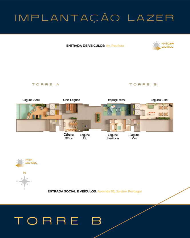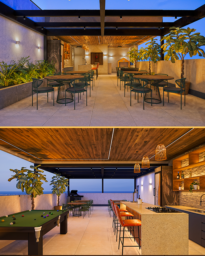 Na cobertura, o lazer surpreende com espaços que despertam sensações e fazem da rotina um verdadeiro refúgio particular. Do nascer ao pôr do sol, o Laguna oferece o cenário ideal para relaxar, se conectar e viver o lado mais leve da vida.